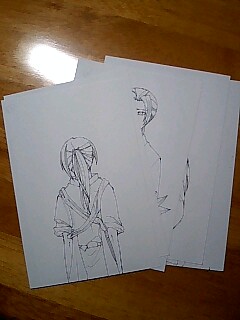一番手前の後姿が原さんです。初出なのに後姿。御免ね不遇で。思った通りに色塗れるといいなー。頑張ります。でも今日はこれスキャンしたら寝ます。明日こそきちんと電王までに起きるんだから!