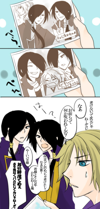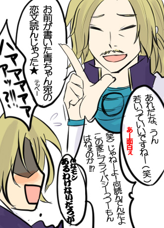 恋慕じゃないんだよ執着なんだよ、とかそんな感じなのですが…互いに突っかかっていたら可愛い。いやでも抜刀騒ぎは可愛いレベルじゃない。毎回思うのですが内藤には他四名臣3人で、長坂には跡部のみが止めに掛かるってのもアレですよね。腕力の差があるよね。長坂可愛いよ長坂。腕っ節では確実にボロ負けである。四名臣舐めんな(笑)