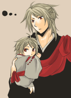 飯富兄弟。若かりし虎昌兄ちゃんと幼少昌景。あっ色塗り忘れて手が消えてるよ!やべぇ!
