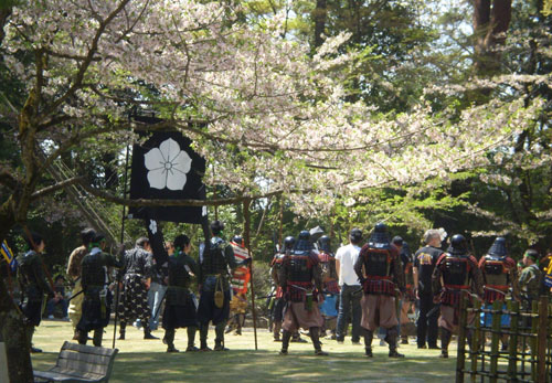 シャッターチャンスをうかがっている間にどんどこ列がばらけていつの間にか組み込まれる観光客。私だけか。他は隊の方のご家族だけか。なんだこの羞恥プレイ。そしてなんだこの大将と部下の温度差。ぐぐぐ郡内なめんなよーーーーー!!!主に雑兵!!